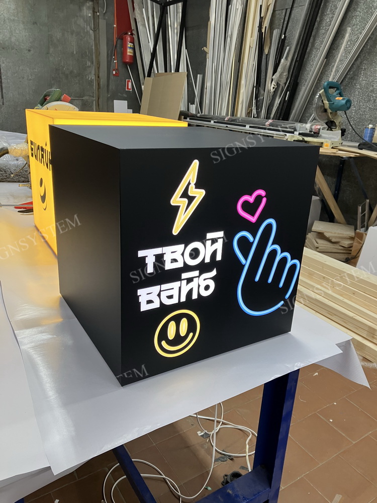 Геометрические арт-объекты — все в одном месте– дизайн, печать, фрезеровка и остальное, вплоть до демонтажа после мероприятия. Одиночные и конструкторские решения. Собственный цех и типография, доставка и монтаж. Аренда типовых размеров.Варианты с подсветкой, подсветка от аккумуляторов, декоративные поверхности, зеркальные элементы, усиленные каркасы, кубы-подиумы, кубы на колесиках. Производство для креативных задач.